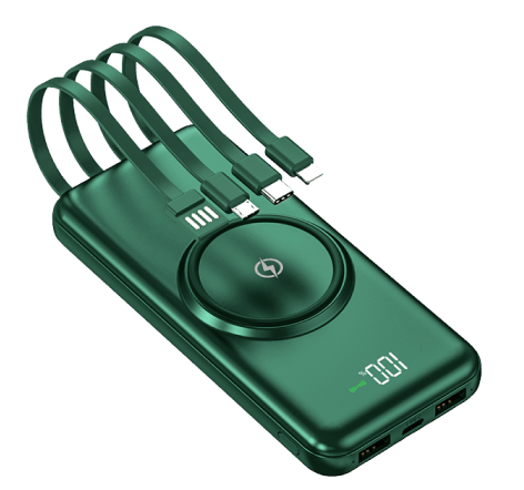 Never be without battery power again with the handy convenience and clever, modern design of this 10000 mAH Digital-Display Power Bank with Cords.