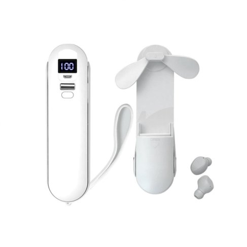 This power bank will change your life, literally and figuratively. It has a lighter, a fan, and most importantly, a set of earbuds! You will always have your phone charged, earbuds ready to use, and fresh wind. You will also save extra space in your pocket with this amazing gadget. Come check it out!
