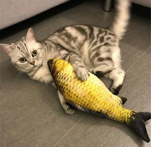 Thanks to a built-in motion-detecting motor, our fish flops with life-like motion when your cat interacts with it or moves near it (imagine the fear and excitement!). When it’s left alone, the fish will not move — playing dead until your cat approaches it again. The motion sensor even adjusts its level of movement based on your cat’s movement: it goes fast if your cat is scurried, and it also moves slowly if your cat is approaching it slowly.