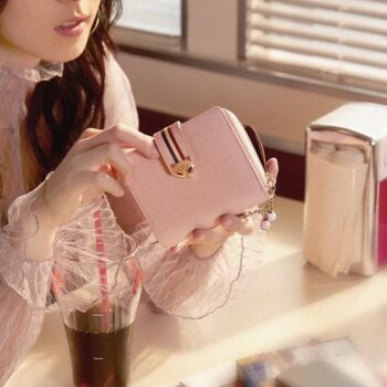 Split Leather Short Wallet with Zipper & Pendant for Women
