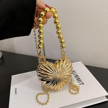 Luxury Pearl Beaded Metallic Heart Crossbody Bag