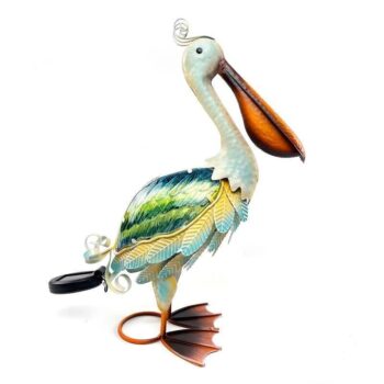 Solar-Powered Metal Pelican Garden Sculpture with LED Light