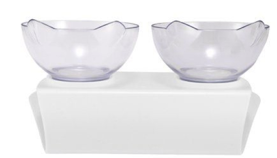 This is great! I wanted something that was set up off the floor. These bowls are cute and durable. As well as transparent. Easy to clean. The base is strong but springy and easy to pop them in and out. Highly recommend!