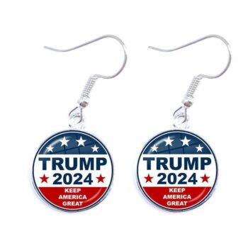 Trump 2024 Patriotic Glass Cabochon Earrings – Silver Plated Drop Jewelry for Women
