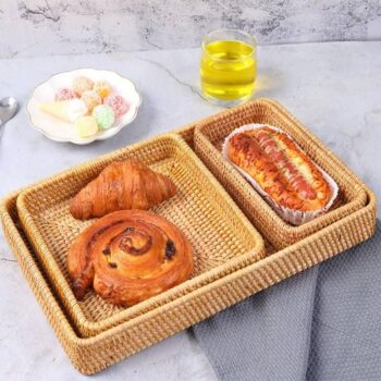 Handmade Woven Wicker Storage Trays – Square Bread Fruit Food Organizing Baskets