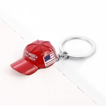 American Flag Hat Keychain – Make America Great Again Mesh Cap Design, Silver Plated Metal Key Ring for Patriotic Enthusiasts