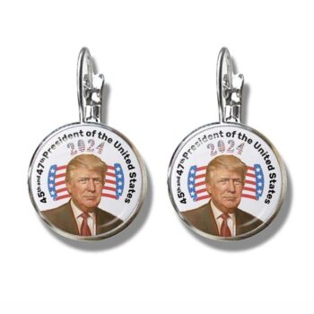 Women’s Trump 2024 American Election Glass Earrings – Silver Plated, French Hook