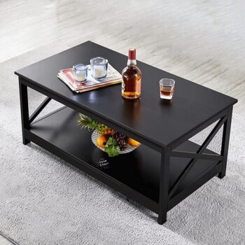 Elegant Black Coffee Table with Storage Shelf for Modern Living Room
